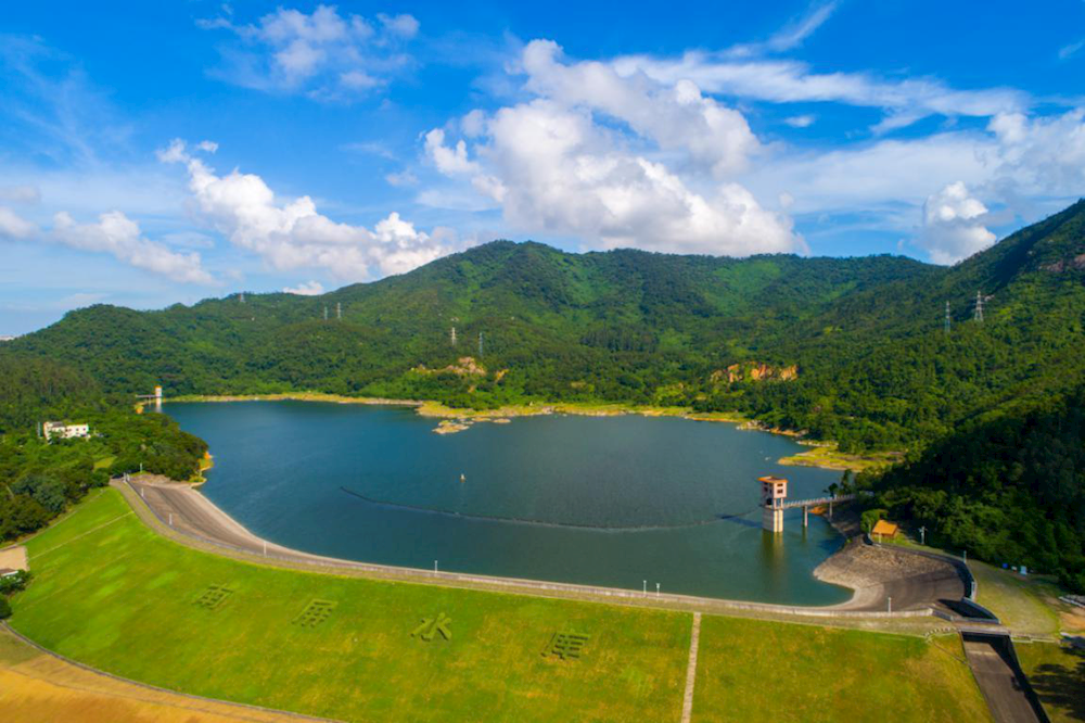 南屏水庫始建于1957年,原名豐收水庫,1958年10月完成,壩高18.3米,庫容80萬立方米,主要用于農(nóng)田灌溉。1993年由珠海市供水總公司有償征用水庫并進行擴建,擴建后水庫正常蓄水位33.1米(黃基,下同),相應(yīng)庫容501萬立方米;1994年10月開始蓄水,通過高、低涵可向澳門、珠海供水,由此極大增強了供水系統(tǒng)的蓄水、調(diào)咸能力,提高了供水質(zhì)量;2001年5月廣昌泵站建成通水,廣昌泵站可由低涵補水南屏水庫,目前最大日補水量40萬立方米,使南屏水庫成為南區(qū)供水系統(tǒng)的樞紐工程。